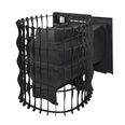Чугунка 16 Подкова Панорама – дровяная печь для русской бани. Особенность модели заключается в том, что она снабжена волнообразной решеткой для камней, имеющей увеличенную площадь поверхности теплоотдачи, а также большим свотовым стеклом в дверце. Массивная топка изготовлена из специального чугунного сплава, устойчивого к перепадам температуры и хорошо аккумулирующего тепло. Изделие имеет удлиненный топливный канал и устанавливается в парной, а закладка дров производится в смежном помещении. Печь обеспечивает длительный и равномерный прогрев благодаря увеличенной массе камней (120 кг) и чугунной топке, которая долго сохраняет высокую температуру после прекращения горения.